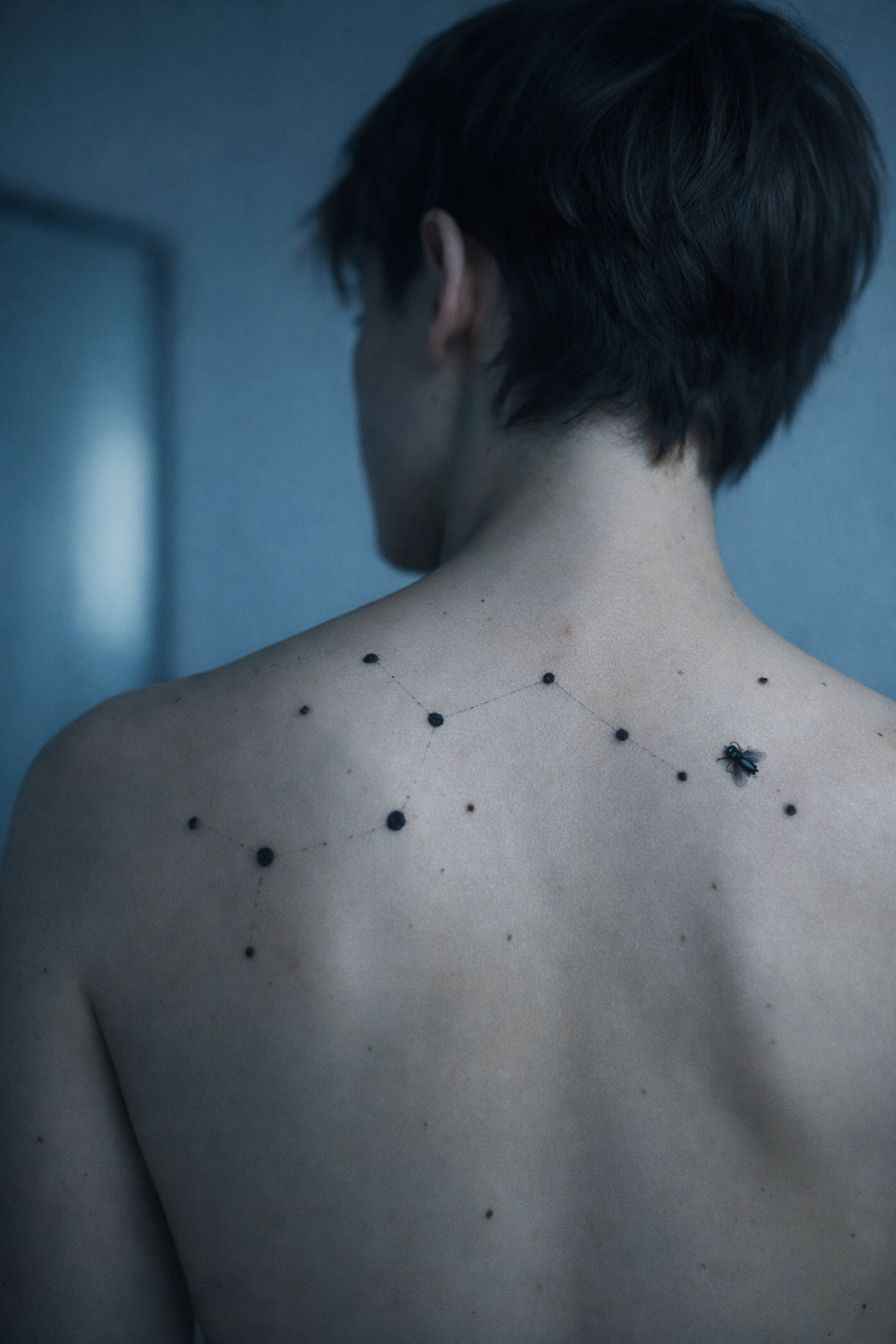 It’s been months since I last saw my moles. We’ve only met in dreams, but dreams so vivid they feel real, they feel contiguous to this world. So I can’t stop thinking that they can be there. That they can be close. They hide when I look at my foot and take refuge in my back. That in order not to make noise, they walk on tiptoe on my neck and lodge in my ears. That at night they go out to dance, more and more sporadically, for fear that I will wake up in a frenzy and burn another. Hopefully, they are still close. I think so. They will return once there are many of them, and I cannot hide them. I tell H that when they return, I will try to unite them with a single line. That I can say: here Orion is formed, here Andromeda is formed, between the two is the earth, and here, from the last distant mole to the one closest to me, your embrace.